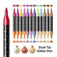LOW MOQ Glitter Brush Markers Highlighters Glitter Marker Pens Set Permanente Impermeable Doble Color Escritura para tarjeta de Navidad